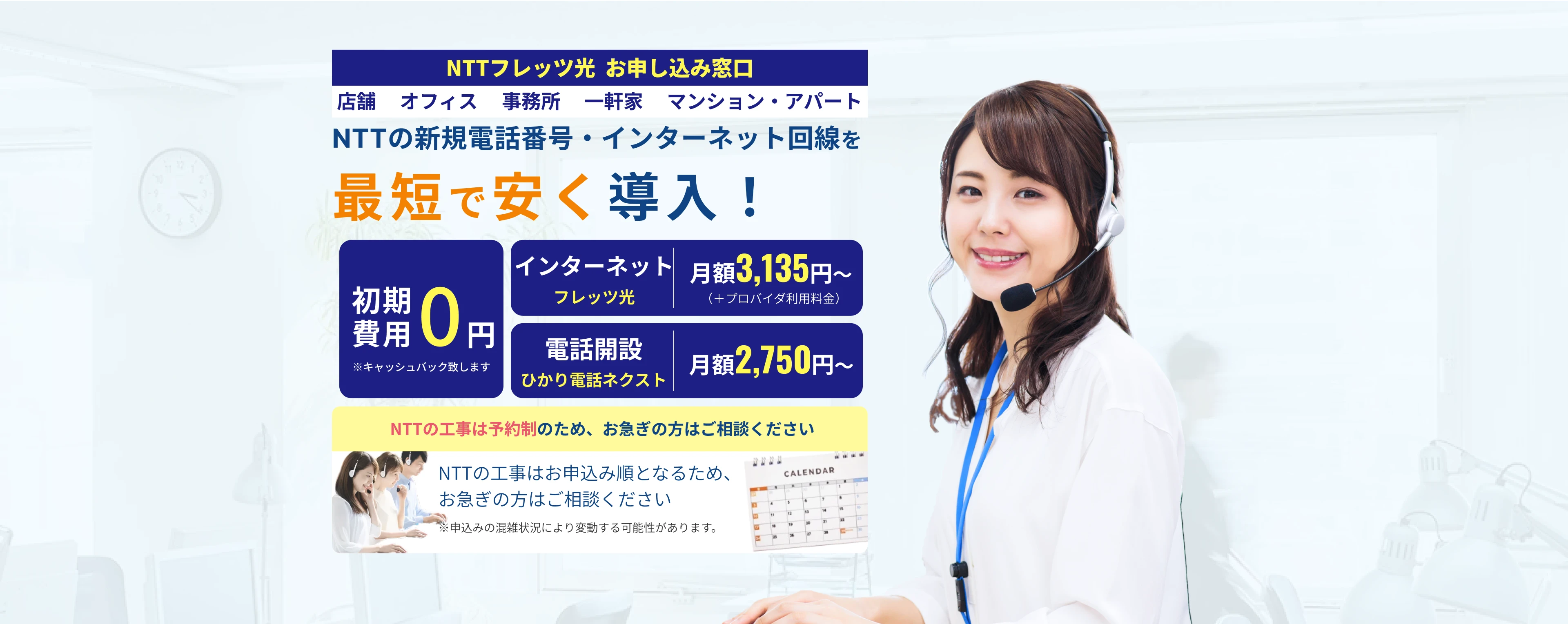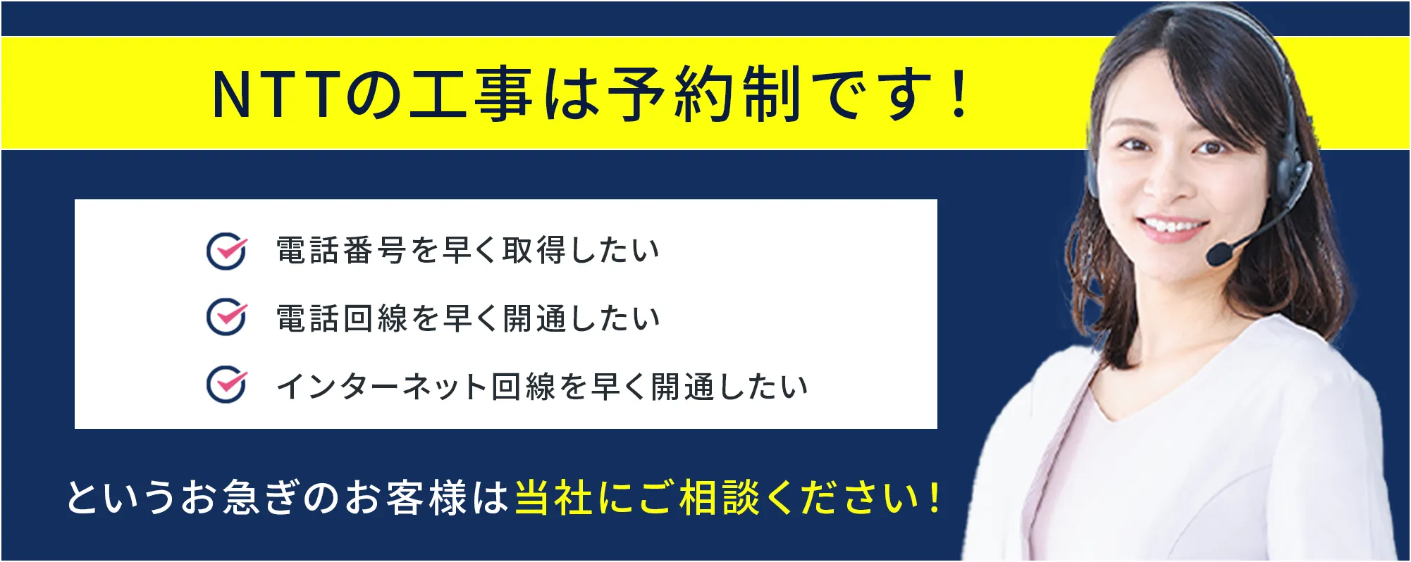 - A申込み日から約2週間~1ヶ月後になり、NTTの工事は予約制となります。